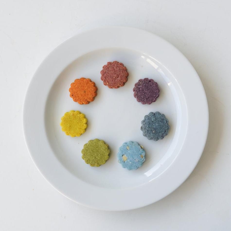 6味の力で整える 1つのフレーバーに複数の「味」を掛け合わせ作られたクッキー。例えば、彩鮮やかな黄色クッキーは甘味×酸味×辛味が掛け合わされています。 |