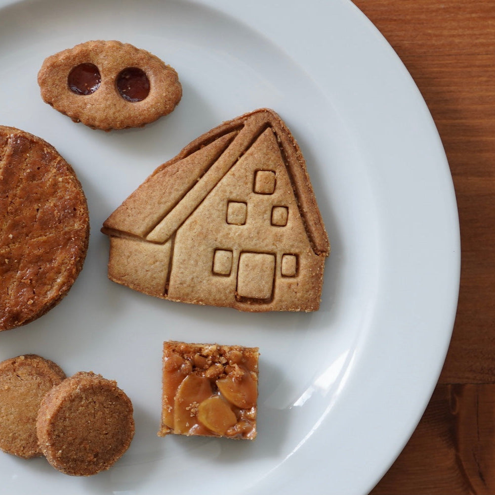 パッケージとメインクッキーには、スタッフが幼い頃好きだった絵本にちなんだ、三角屋根のおうちを採用しました。