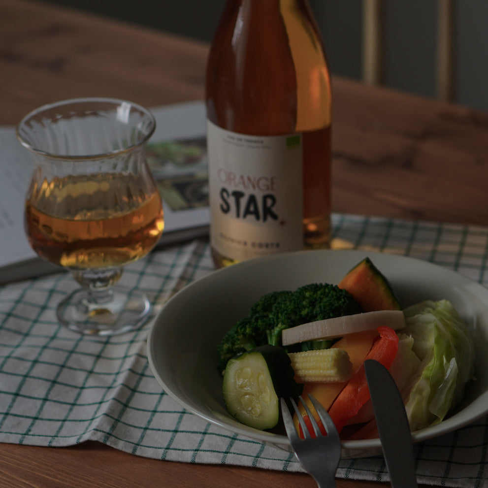 白ブドウを赤ワインと同じ製法で醸造した「オリヴィエ・コスト・オレンジスター」。醸造後は、タンクで6ヶ月間熟成させているため、ナッツ類のようなアロマティックな香りが特徴です。優しいタンニンで苦味も少なく、軽やかに楽しめる一品。お食事全般にお楽しみいただけますが、おすすめはアペリティフや前菜。海老のソテーや蒸し野菜に合わせてみてはいかがでしょうか。