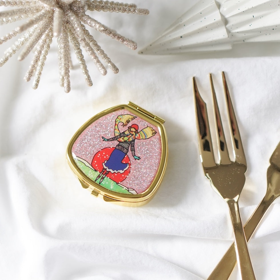 1920年代、自由に生きた女性たち〈フラッパー〉を描いた一枚。氷上を軽やかに舞う姿は、時代にとらわれない美しさと自信の象徴。グリッターの輝きが、冬の空気に自由のきらめきを添えます。
