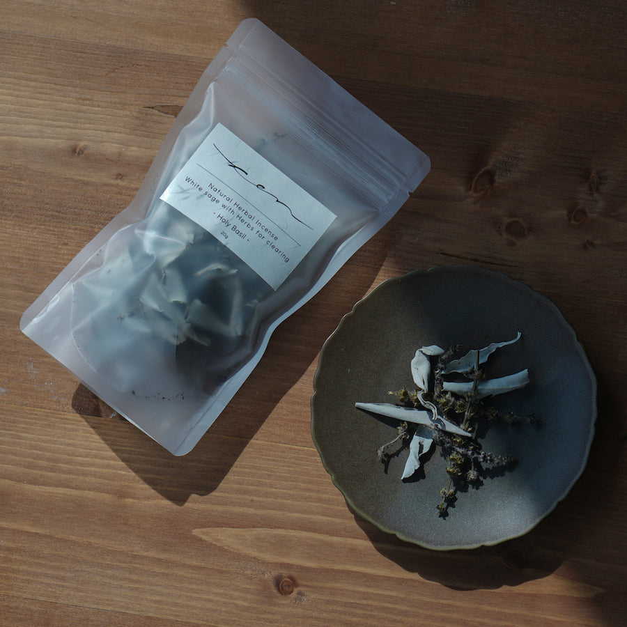 『浄化』 それは、空間や心身を清め、クリアにしニュートラルな状態に戻すこと。 毎日忙しく、情報に溢れた日々の中で、ゆったりとした時間を用意すること、そして自分の心と向き合うことはとても大切なことです。 こちらの浄化力の高いと言われる「オーガニックホワイトセージ」と「ホーリーバジル」のドライハーブをミックスしました。