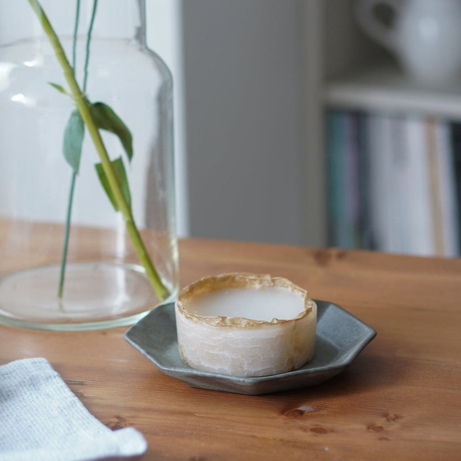 一つ一つ手でこねて、丁寧に成形する。形を変え、香りを変え、異素材と組み合わせ、自由自在に着想を形にできる蝋だからこそ、一つ一つ表情の違いを楽しむことができる。落合さんの作品は、私たちの暮らしにやさしく寄り添いながら、そんな蝋の魅力を教えてくれます。