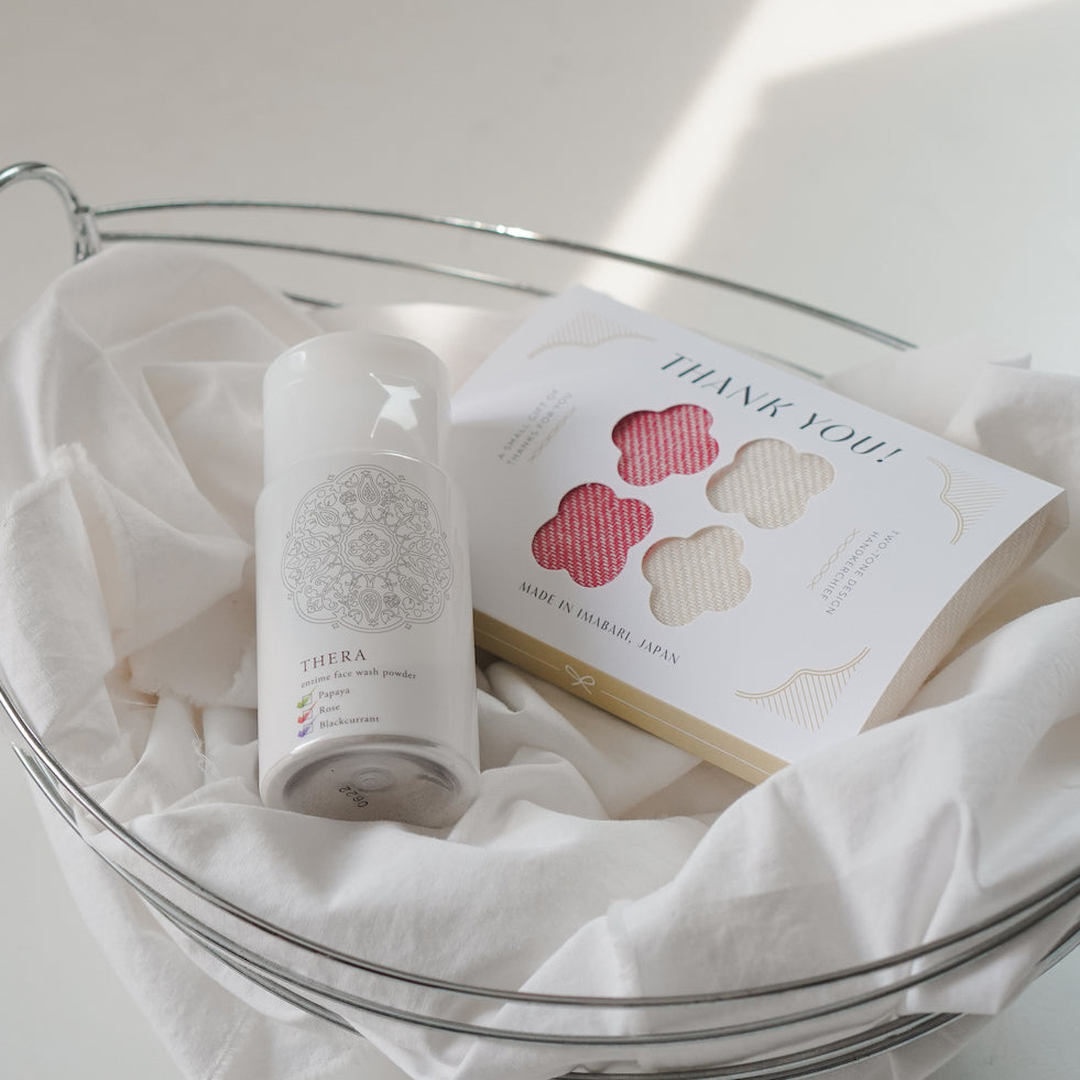 古来より日本人の生活に寄り添ってきた“発酵”の知恵に着目した酵素洗顔料と、繊細で柔らかな肌ざわりの今治産タオルハンカチ。ふたつの心地よさが、日々のひとときを上質に彩ります。感謝の気持ちを、静かに、丁寧に届けてみませんか。