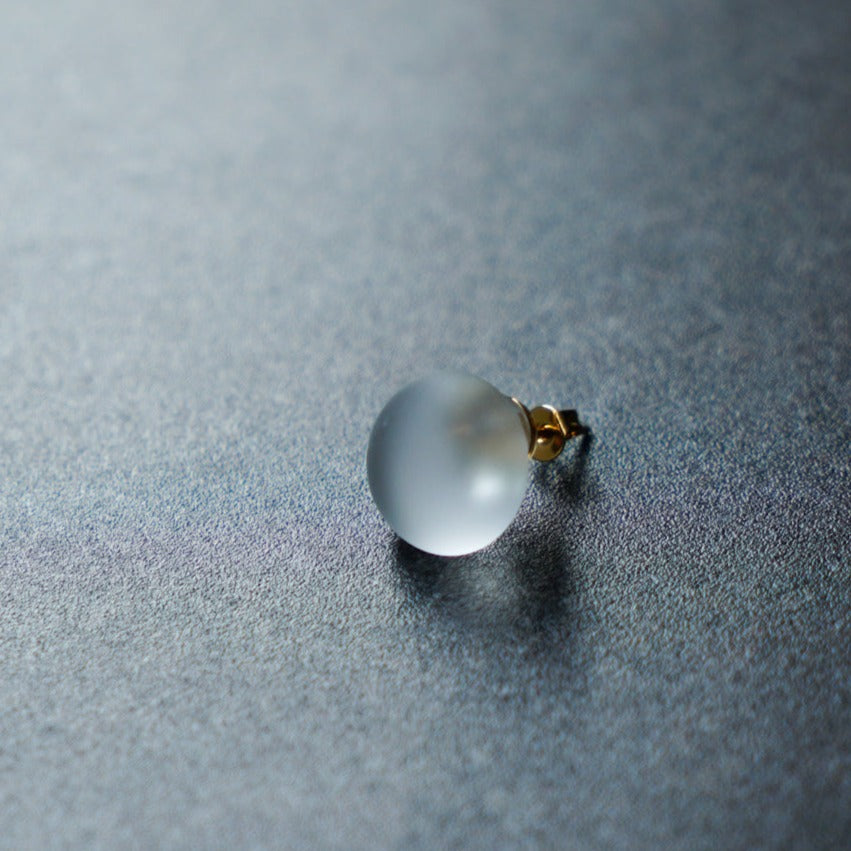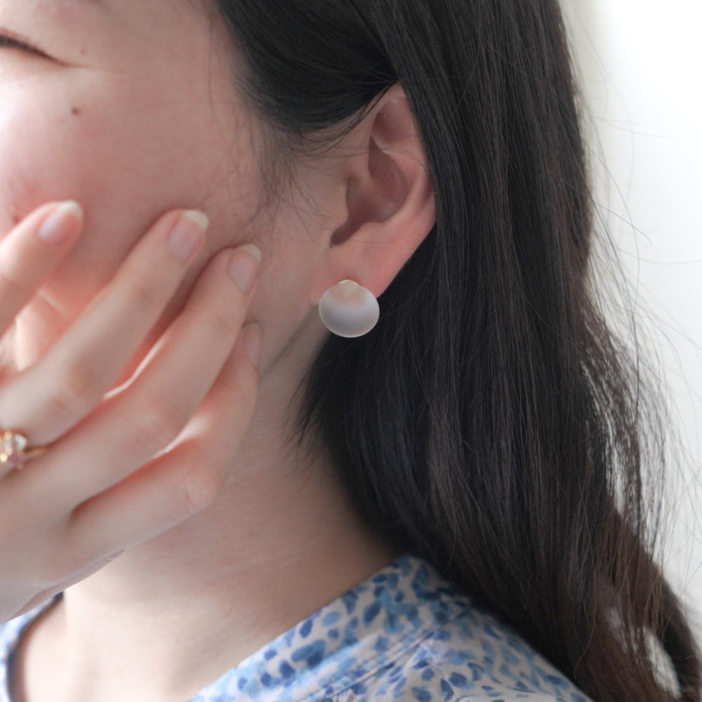 マットガラス特有の、ふんわりと光を透かす姿が美しいガラスピアス「マユ」。