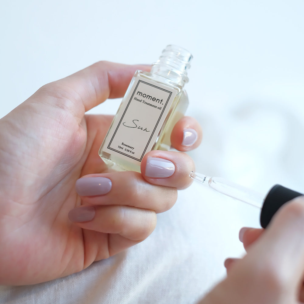 「爪を健康に育てる」ことをモットーに生まれた、自宅でもサロンのようなネイルケアを叶える、moment.のハンドトリートメントオイル。