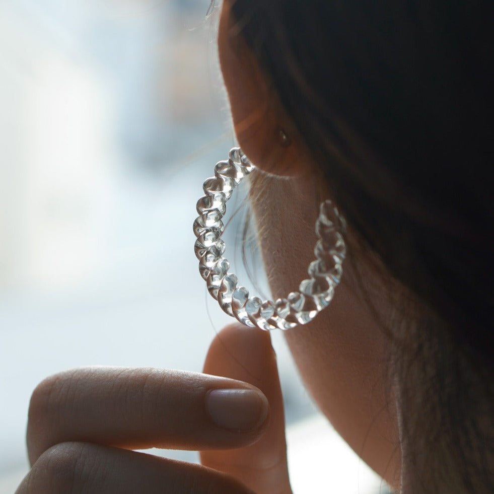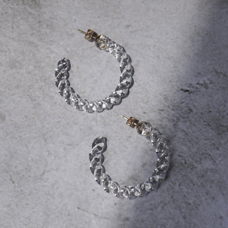 螺旋を描くガラスのラインが美しい「ネジリ」。やや大きめのフープ型で存在感がありながらも、透け感のおかげで派手になりすぎないところが嬉しいポイント。大ぶりなピアスが好きな方におすすめです。