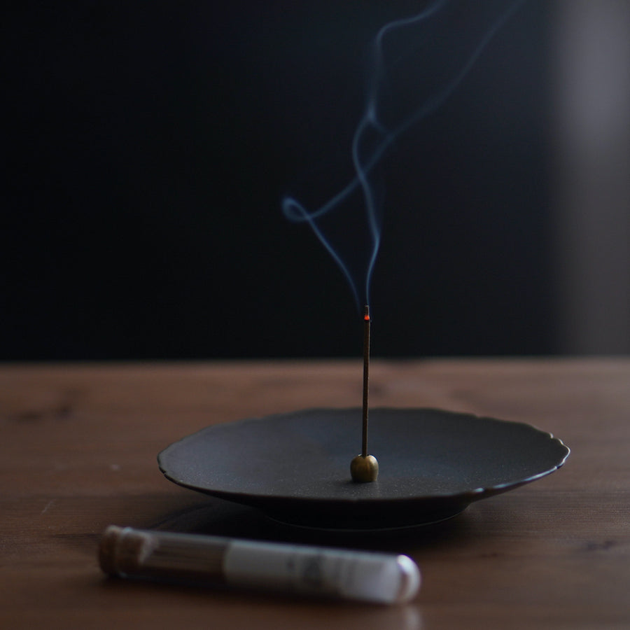 2.スティック状のインセンスを刺して先端に火を付けます。