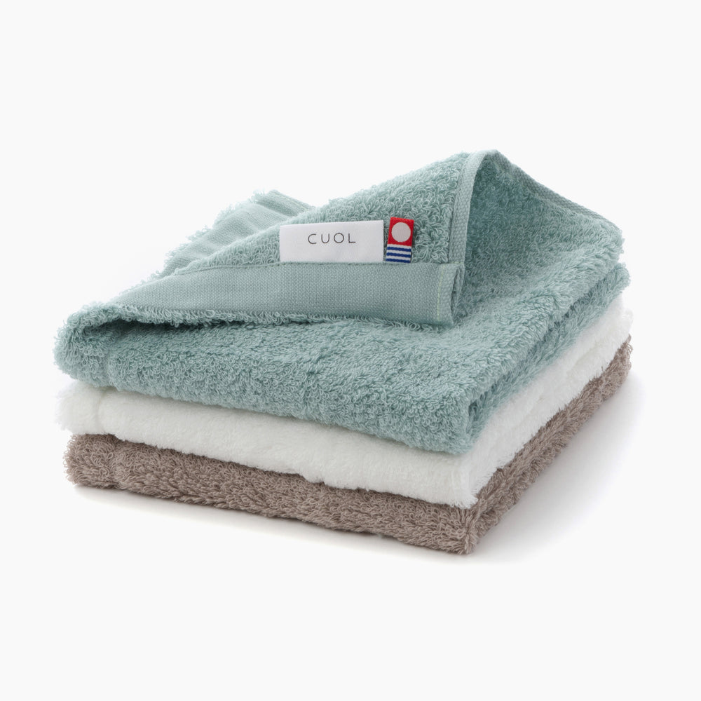 左側は、ハンカチより一回り大きいウォッシュタオル。外出する際でも持ち歩きやすいサイズで、お子様用としても使いやすいサイズ感です。