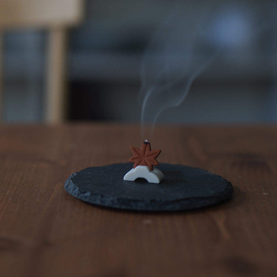 2.萬葉香を灰の上に立てるか、付属のお香立てに立てます。