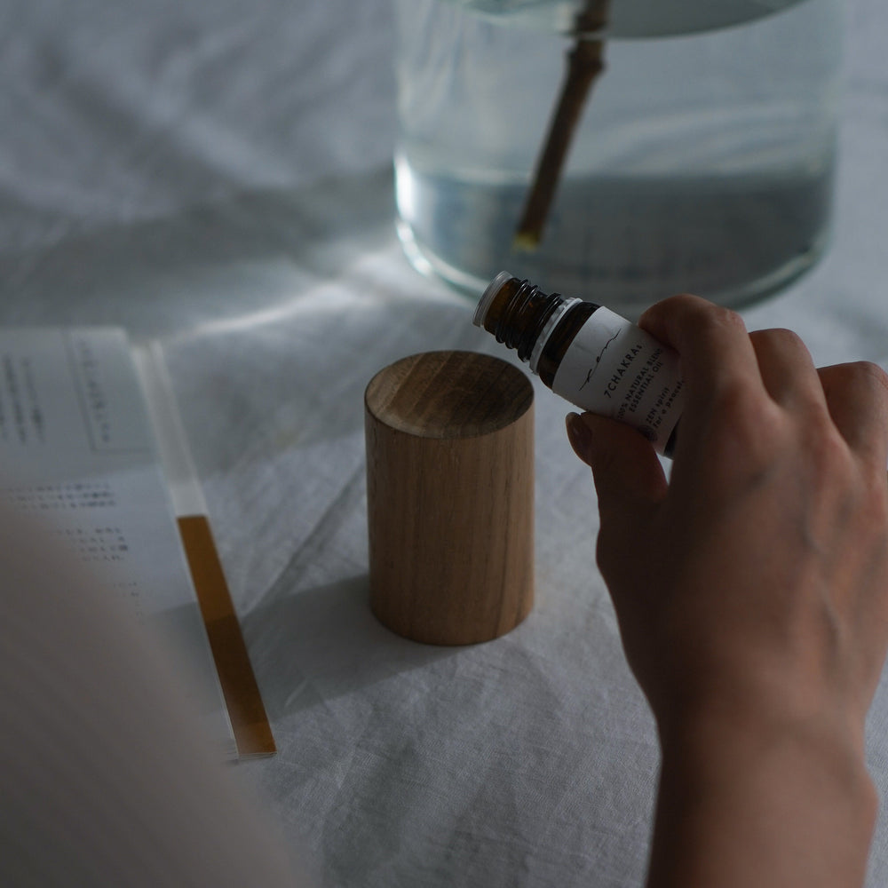 アロマオイルを、アロマウッドやストーン、いつも愛用するハンカチなどに数滴垂らし、ふんわり広がる香りを楽しむことで、気持ちの高ぶりを静め、心身をリラックスすることができます。